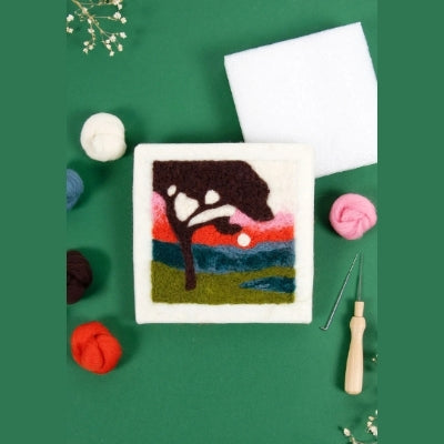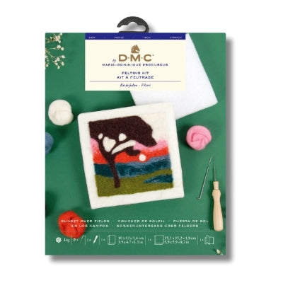Crea una preciosa escena de puesta de sol sobre el campo con este kit de fieltro de Marie Dominique Procureur. Incluye todo lo necesario para completar el proyecto, desde lana cardada de alta calidad hasta instrucciones paso a paso.