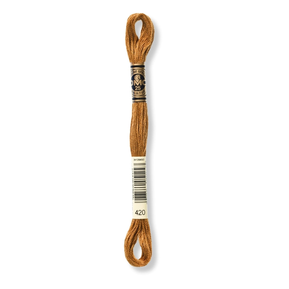 Viene en madeja de 8 metros de largo, tiene grosor 25 y está disponible en una amplia gama de colores.